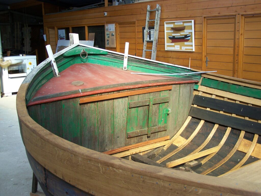 - Le chantier propose la réparation sur les embarcations traditionnelles, notamment à clin : liston, plancher, bordage, membrures … Il peut vous accompagner pour un projet de restauration et vous conseiller.